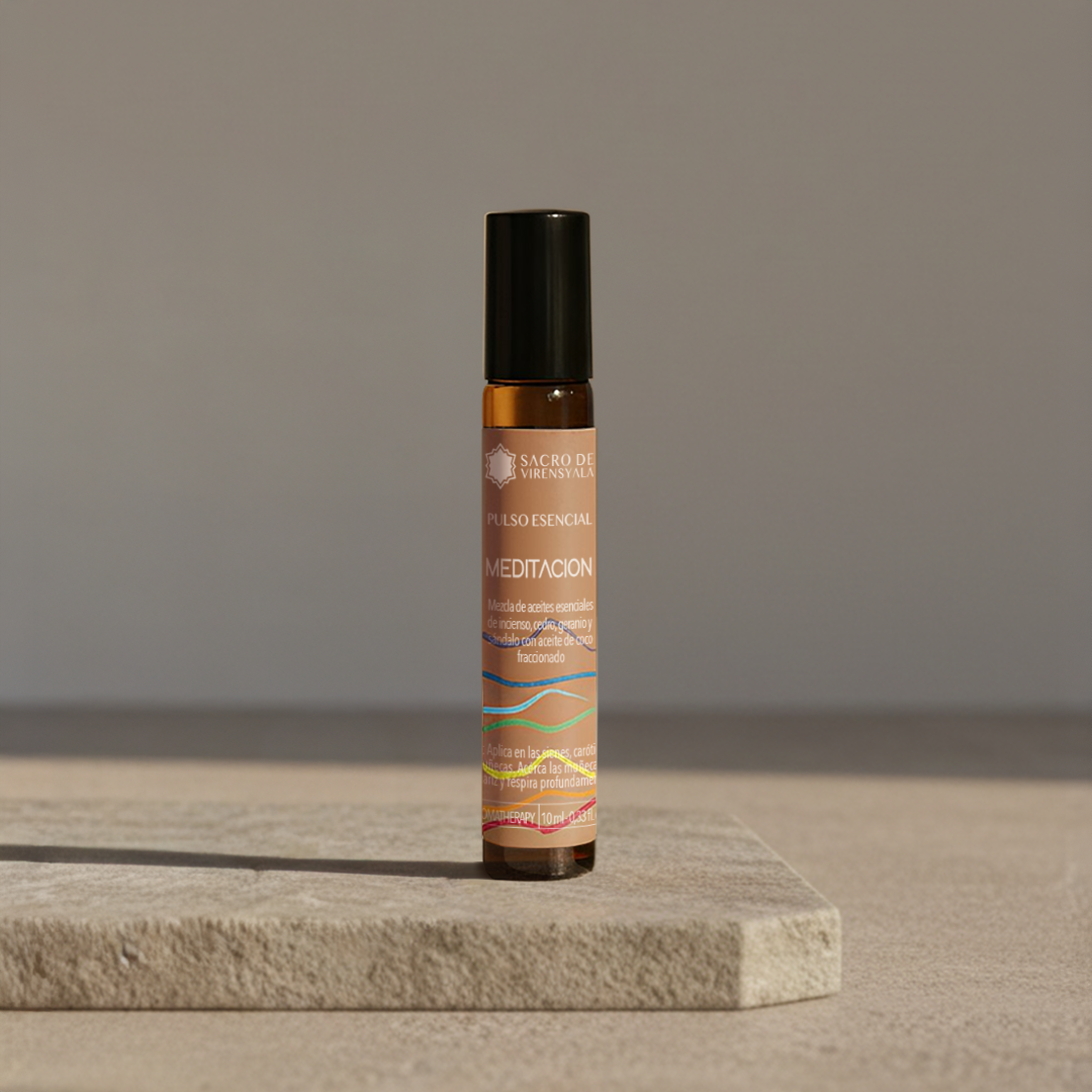 Frota esta mezcla en tus muñecas, carótida, sienes y pecho antes de iniciar tu meditación.