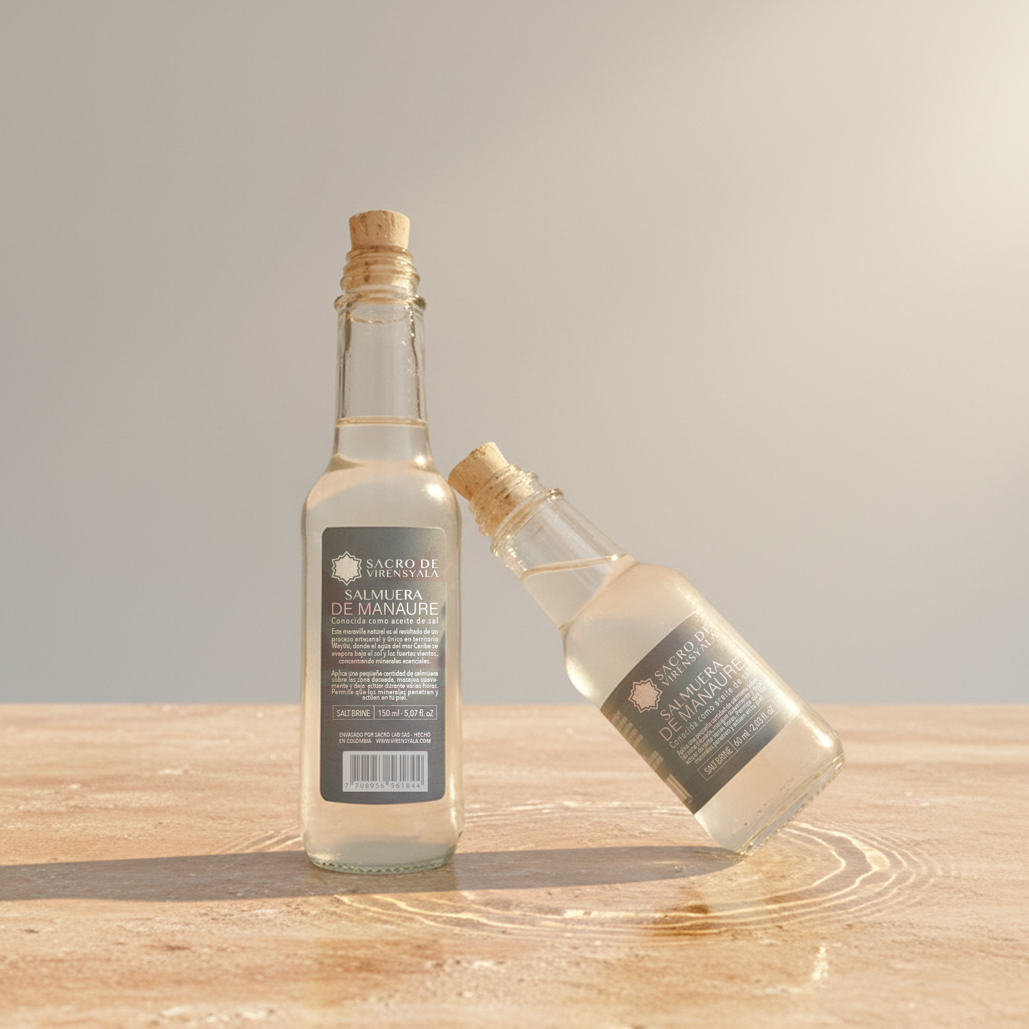 Descubre el poder regenerador de nuestra Salmuera de Manaure, también conocida como aceite de sal. Extraída artesanalmente de las salinas de Manaure, en territorio Wayúu, esta maravilla natural es el resultado de un proceso único donde el agua del mar Caribe se evapora bajo el sol y los fuertes vientos, concentrando minerales esenciales que nutren y revitalizan tu cuerpo.